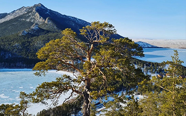Its peak is 20 m above the surface of the moon. Surrounding the northern, western and southern coasts are rocks and cliffs of various shapes, beautiful caves (Redstone, etc.), pine and birch forests that give Burabay a special charm. Burabay sanatorium, holiday homes "Okzhetpes" and "Blue Bay" are located nearby. Sea bass, fry, carp, pike and catfish are found in the lake water. The unique beauty of the Burabay nature has formed the basis of many works of literature and art.