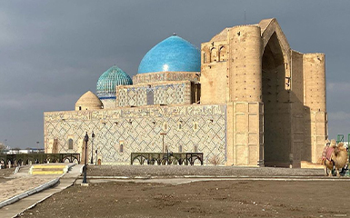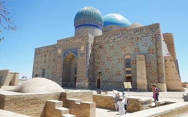The tomb of Hodja Ahmed Yesevi was built in the name of the Mongolian ruler Timur between 1389-1405 in the city of Yasi (now the city of Turkestan in Kazakhstan). Although partially unfinished, it is one of the largest and best preserved structures from the Timurid period. At Yesevi's mausoleum, he experimented with construction technology and the art of decoration, which would later shine in his capital, Samarkand.