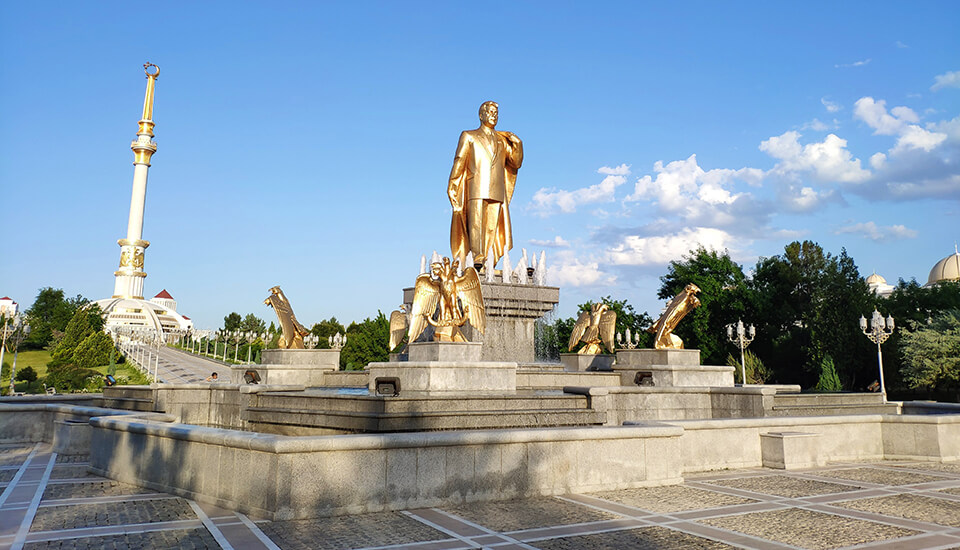 Independence Monument is one of the largest landmarks in the city, and the tallest building located in the parks of the capital. A wide marble alley leads to the Monument. The statues to the national heroes, who contributed to the strengthening of statehood and the protection of the Turkmen states in different years of the centuries-old history of the Turkmen people, adorn the alley. A statue to the first president of Turkmenistan, Saparmurat Niyazov, is built in the centre of the alley.