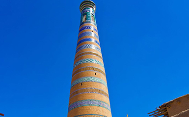 Minaret of the Islam Khodja is in Khiva, located in the centre of the citadel of Itchan-Kala, part of the Islam-Hodja complex, together with the madrasah of the same name. It is the tallest structure in old Khiva, its height is 56.6 meters, and with this indicator it is the second highest minaret in Central Asia, and in first place there is the Kutlug-Timur Minaret in Kunya-Urgench with a height of more than 60 meters.