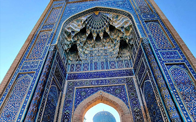 The Gur-Emir mausoleum in the Uzbek city of Samarqand is the tomb of Timur Lenk, some members of his family and other personalities from the ruler's circle, including Ulugh Beg, Shah-Rukh and Mir Said Berke. It was built in 1403/04 and is considered the most outstanding example of the special construction of a double-skinned dome developed under the Timurids. The melon-shaped, ribbed dome of the mausoleum over a high drum forms the dominant centre of the complex.