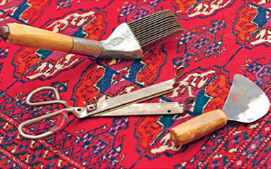 Carpets met a variety of household needs. They provided the houses with heat insulation, served as furniture, cupboards, chests, cover for the household equipment, tribal signs and indicators of the family wealth. A bride provided carpets, which covered walls and floor, for new family as a dowry. Besides the carpets, the bride's dowry included the carpet-making tools, namely, a special knife called ‘keser’, combs for wool – ‘yun darak’, a beetle – ‘dokma darak’, scissors – ‘gezlik’.