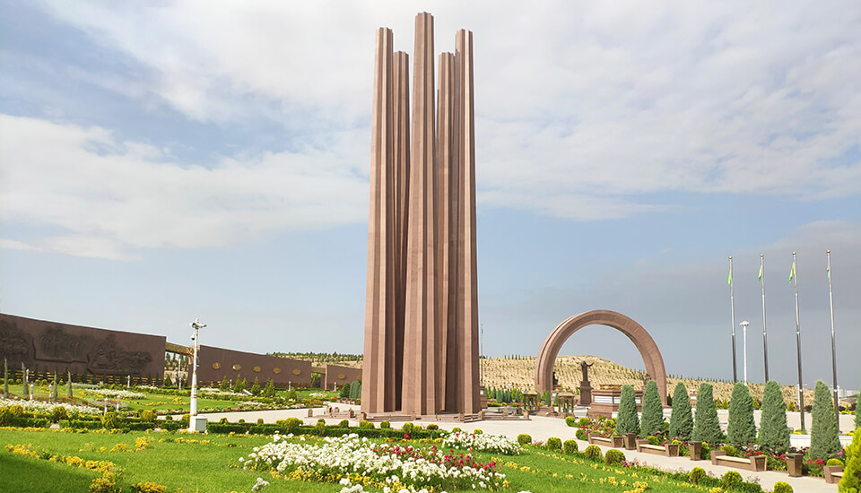 Located on a hill towering over the city, the Memorial Complex covers an area of 650 000 metres2. It includes the monument dedicated to World War II, the monuments to the heroes of World War II and the Battle of Gokdepe, and to the victims of the 1948 Ashgabat earthquake. The Complex has a museum and a building for sadaqa on Day of Remembrance.