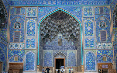 In the west is the Ali Qapu, the High Gate, it was the entrance to the Shah's garden palace and served as a viewing platform. Opposite it, to the east, the entrance portal of a prayer house, a smaller, more private royal mosque, the Masjed-e Sheikh Lotfollah, fits into the arcades.
