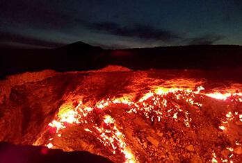 - Darvaza Burning Gas Crater: Experience the breathtaking sight of this iconic natural wonder, known for its fiery glow in the Karakum Desert. Enjoy a barbecue dinner while camping in traditional Turkmen yurts or tents.